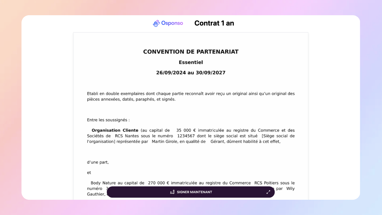 Signature électronique Des exemples concrets de gains de temps ? « Sur une première édition, cela nous a surtout permis d’avoir une approche “professionnelle” tout en étant bénévoles et très peu expérimentés. Nous avons pu nous concentrer pour développer des partenariats plutôt que passer du temps à les gérer ou à corriger des erreurs. » Autrement dit, Osponso a permis de dégager du temps pour la prospection de sponsors et la valorisation des partenaires , plutôt que de s’enliser dans l’administratif.